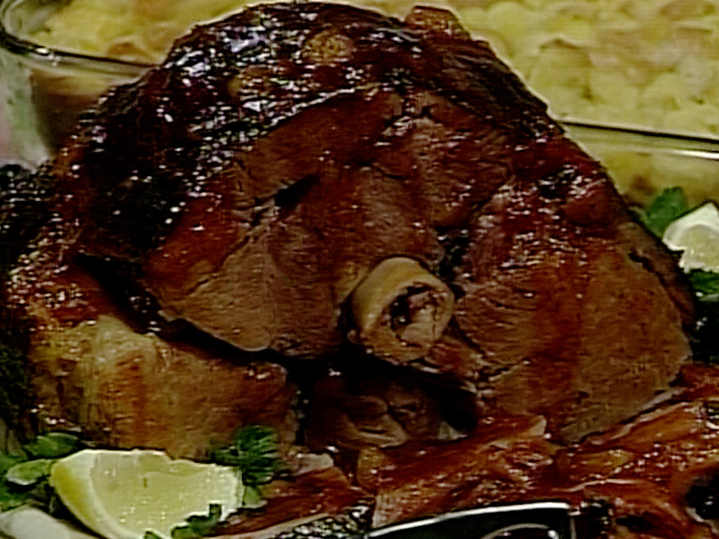 - Bake ham for 3 hours, pouring vinegar over ham at 30 minute intervals until the entire bottle is used up. Do not baste ham with drippings in bottom of pan.